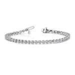 Indulge in timeless elegance with our exquisite 14k White Gold Tennis Bracelet, featuring a dazzling 4 1/3 carat array of lab-grown diamonds. Each diamond boasts VS/SI+ clarity and G+ color, ensuring a breathtaking sparkle that captures light from every angle. Crafted for those who appreciate sustainable luxury, this bracelet combines ethical craftsmanship with unmatched beauty, making it a perfect accessory for any occasion. Whether you're attending a gala or enjoying a casual day out, its sophisticated design complements any attire. The secure clasp ensures a comfortable fit, while the 14k white gold setting provides a sleek, modern finish. Gift this stunning piece to a loved one or treat yourself to a touch of glamour that stands the test of time.