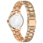 Ladies Silhouette Crystal Watch—elegant rose gold design with Eco-Drive technology. No battery needed, perfect for eco-conscious fashion lovers seeking timeless style and reliability.
