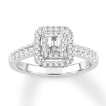 10k White Gold 1/2 tdw Emerald Cut Dia Engagement Ring