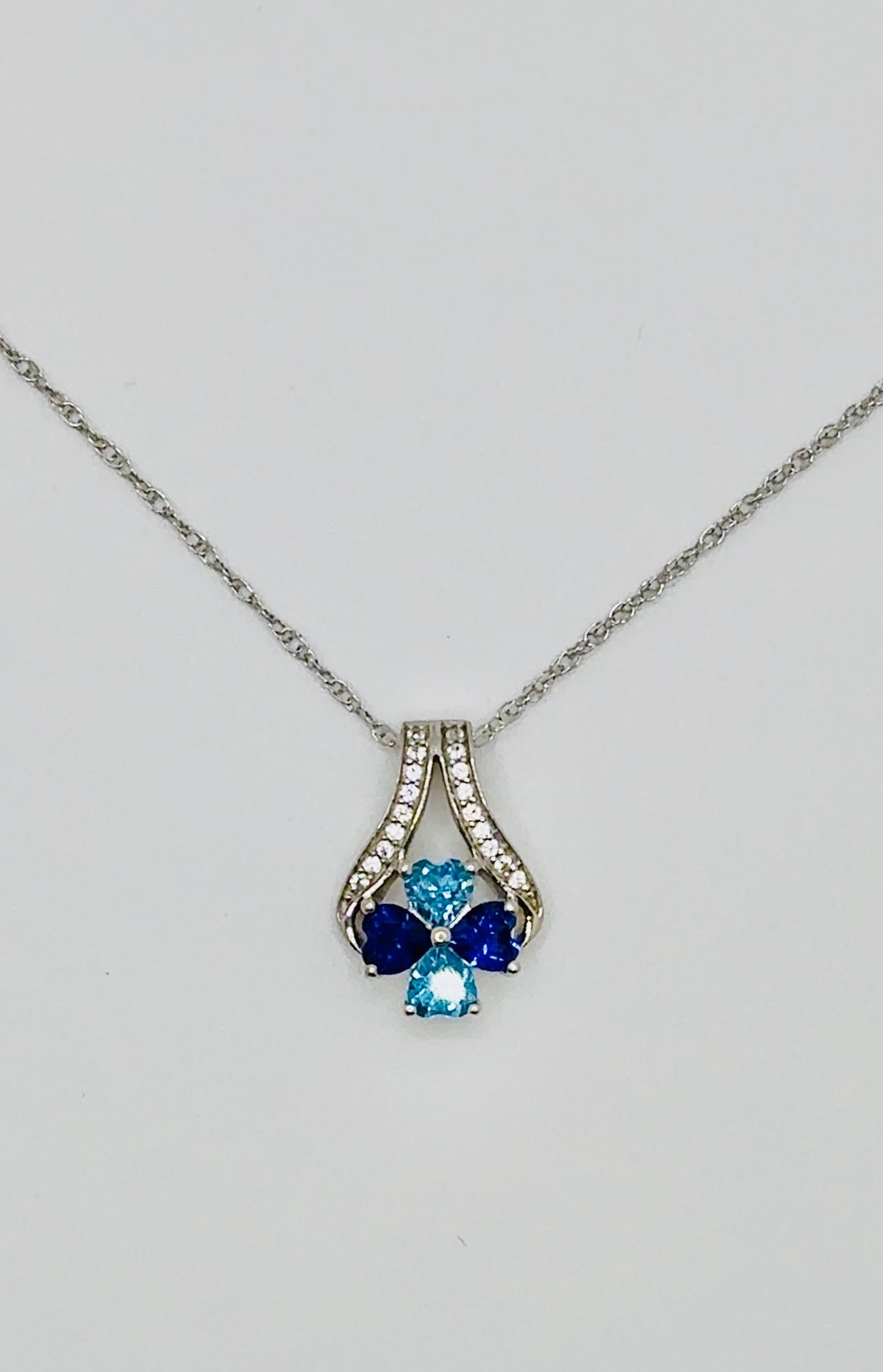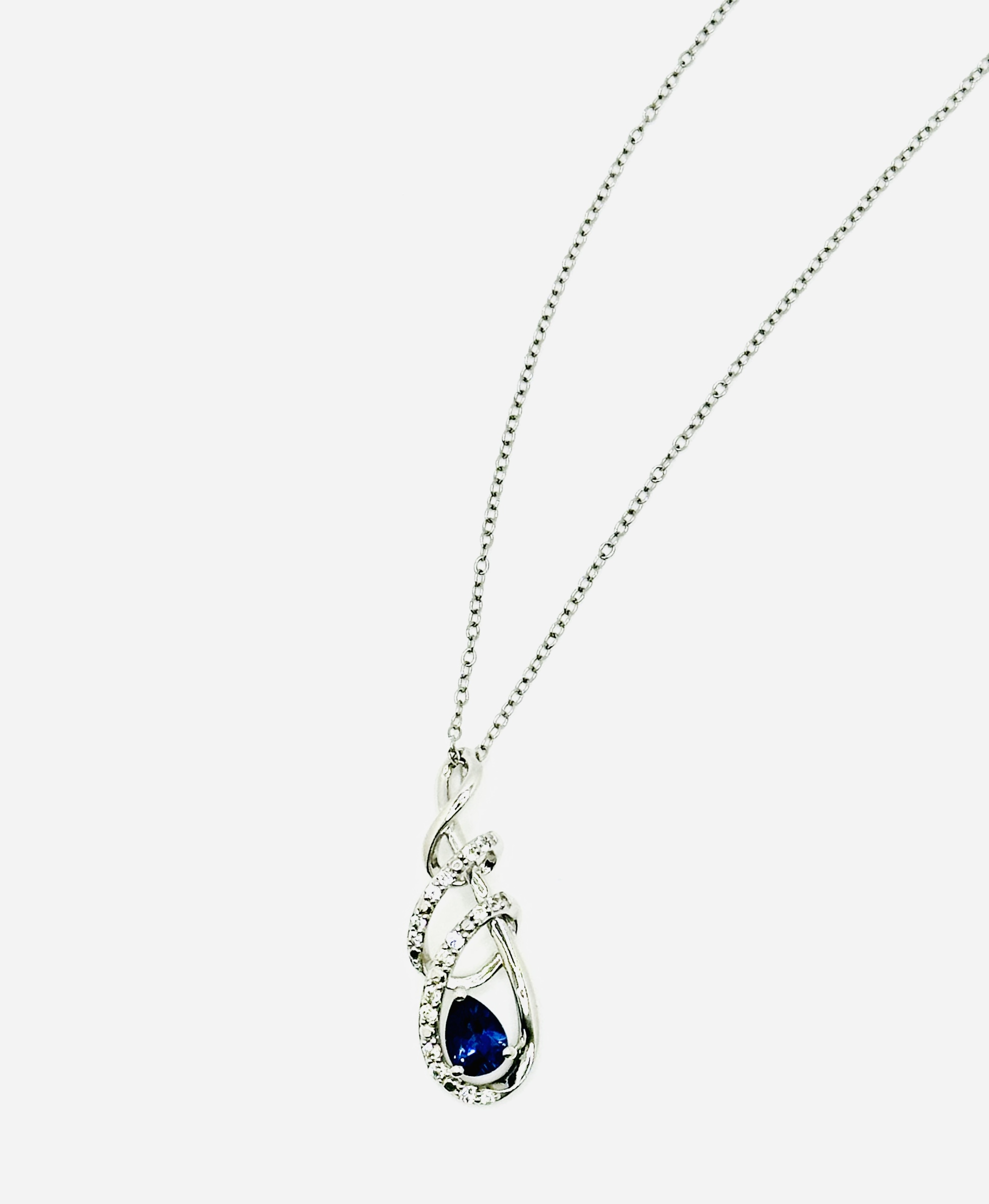 Pre- Loved Sterling Silver Created Tear Drop Sapphire Necklace