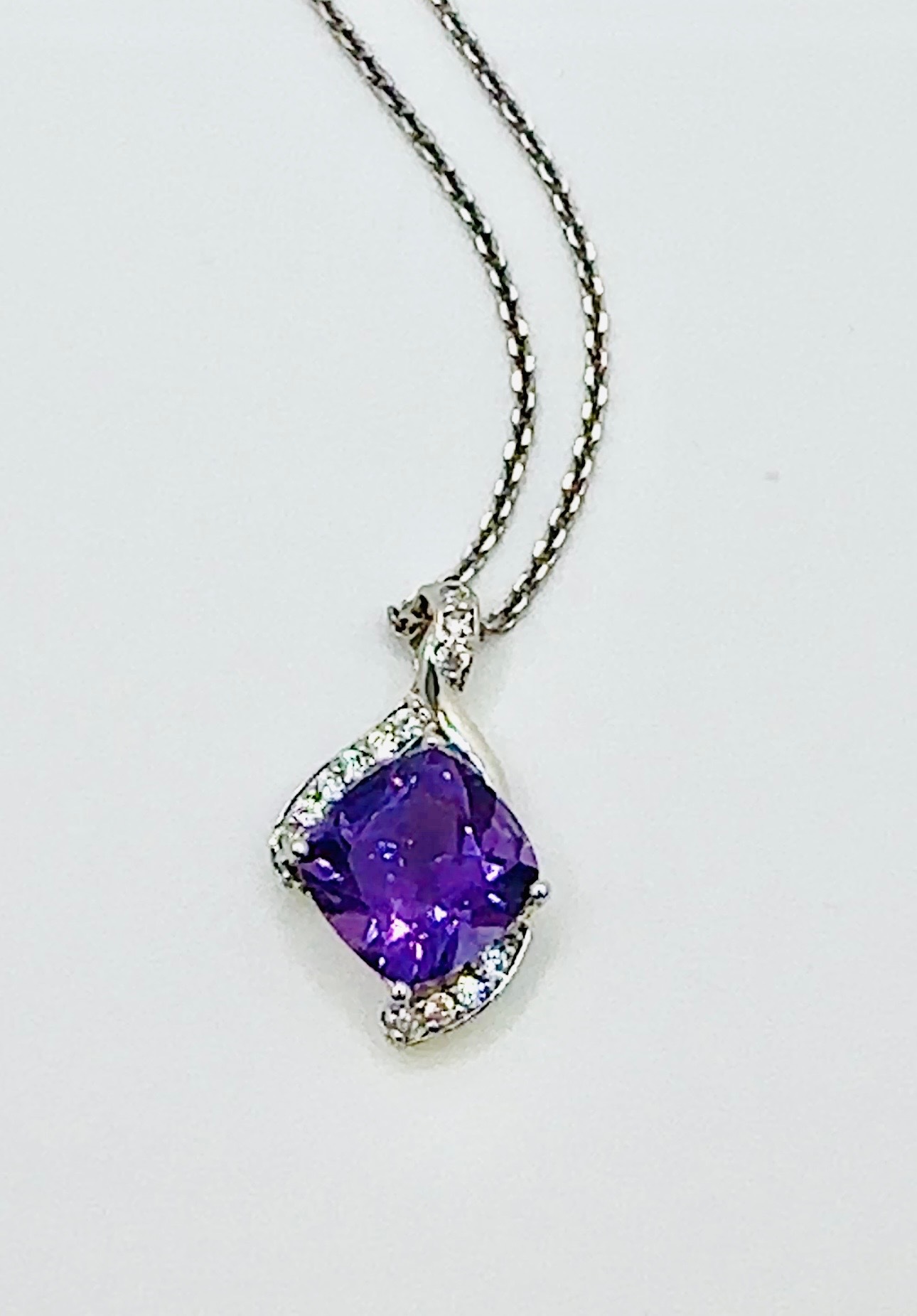 Sterling Silver Previously Loved Amethyst and White Sapphire Pendant