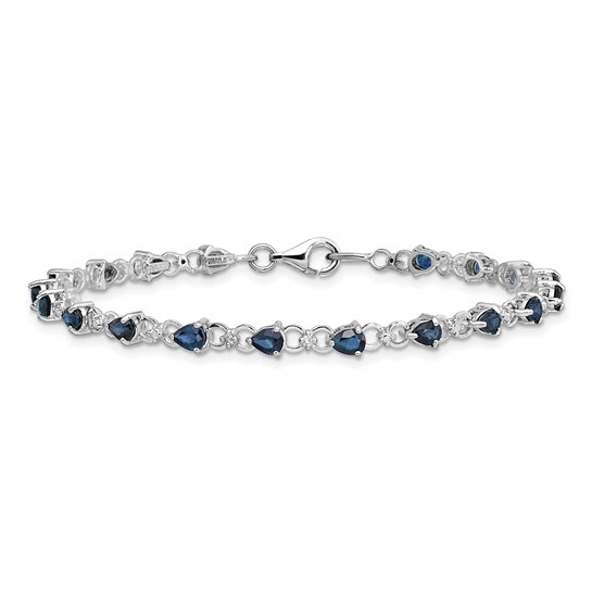 Sterling Silver Rhodium Plated Sapphire and Diamond Bracelet