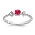 14K White Gold Cushion Ruby and Diamond Ring—elegant and timeless. Features a vibrant ruby centerpiece flanked by sparkling diamonds. Perfect for adding a touch of luxury to any occasion.