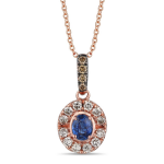 14k Strawberry Gold Levian 1/3 Blueberry Sapphire Pendant with Diamond Sides