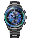 Innovative technology once again meets elevated chronograph styling in our latest: the limited-edition ATTESA H800 Full Sapphire Bezel. A 42mm Super Titanium™ case in gray DLC solidifies the lightweight, durable construction of the timepiece that is also scratch- and corrosion-resistant, while a matching triple-link bracelet secures the watch to the wrist. A signature crown and modern chronograph pushers add a sporty touch, while an expansive sapphire crystal extending over the inner world-time bezel differentiates the timepiece in the ATTESA line.