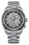On the special detailed dial, a captivating time-and-date display is at work, with black and applied DLC accents adding dimension. Advanced features of the timepiece include world time in 26 time zones and a perpetual calendar. Featuring our sustainably light-powered Eco-Drive Atomic Timekeeping functionality, the timepiece self-adjusts to time or calendar when traveling overseas by receiving local time signals in four different regions. Water resistant up to 100 meters. Caliber H145.