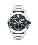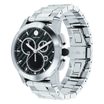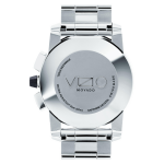 Movado Vizio Chronograph, 45 mm stainless steel case with Dura904 steel bezel and black carbon fiber chronograph dial. Features a screw down crown, Swiss Super-LumiNova® accents, engraved caseback, and stainless steel bracelet.