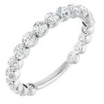 Celebrate your enduring love with the 14K White Gold 1 1/6 CTW Lab-Grown Diamond Anniversary Band by Stuller. This exquisite piece features 1 1/6 carat total weight of sparkling round lab-grown diamonds, set in a polished 14K white gold band. Each diamond is sustainably created, offering an eco-friendly alternative without compromising on brilliance or quality. The band’s sleek 2.5 mm width ensures a comfortable fit while providing a timeless elegance that complements any style. Whether marking a special milestone or adding a touch of sparkle to everyday wear, this anniversary band is a testament to love that lasts a lifetime. Embrace sustainable luxury and make every moment shine.
